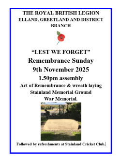 The Royal British Legion – Elland, Greetland and District Branch